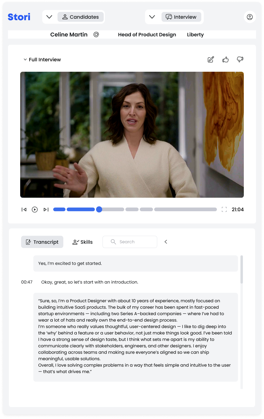 Our AI analyzes authentic candidate stories to provide benchmarked insights that help companies make better hiring decisions faster.